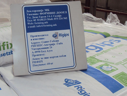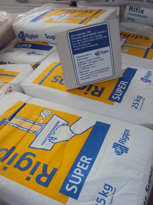 Завршен производ кој што се вградува во секоја сува градба се бандаж лентата и пополнувачот за споеви-Fugen filler SUPER и лепакот за гипс картон Rifix.