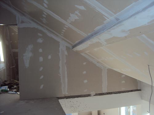 Прегаден ѕид со дупло обложување, Спуштен плафон, опшивање на греди и баџи-3